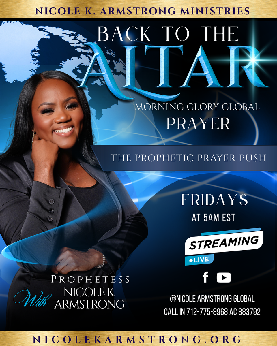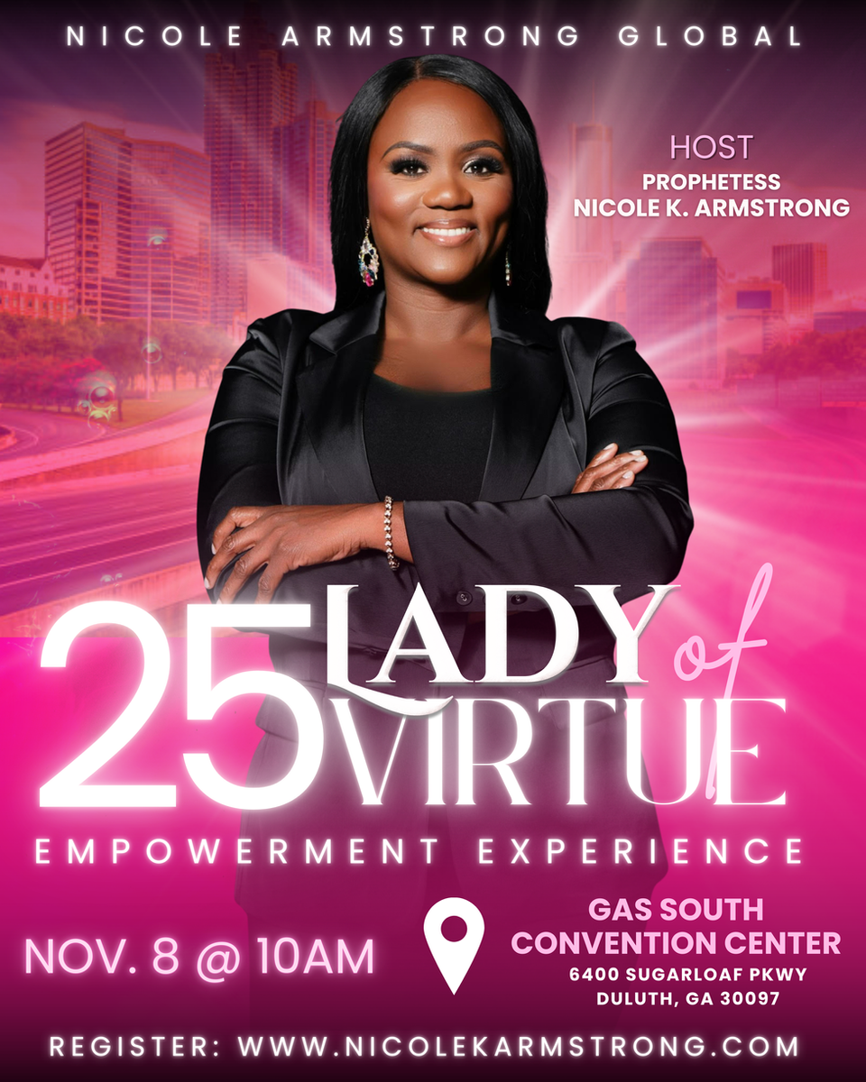 Nicole K Armstrong, she is known as a Global Prophetic voice preaching a kingdom message. A native of Kingston, Jamaica and at the early age of seven she accepted the Lord Jesus as her savior. In 1985, she relocated to the United States and resided in New York until she relocated to Atlanta GA in 1997. In 2005 she founded Nicole Armstrong Ministries with two assignments The Glory Encounter Global Gathering and The Empowerment Experience a nationwide yearly conferences. Under the umbrella of NAM-She has also founded “Lady of Virtue (LOV)” A ministry geared towards Educating, Equipping and Empowering women to walk in their God given purpose globally.